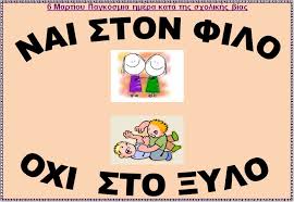 Την Τετάρτη 6 Μαρτίου είναι η Παγκόσμια ημέρα κατά της Βίας στα Σχολεία. Εμείς σαν σχολείο θέλουμε να δείξουμε ότι η προσπάθεια μας δεν σταματάει σε ένα πρόγραμμα. Καλούμε τους μαθητές και τους εκπαιδευτικούς να συμμετέχουν ενεργά σε μια βιωματική παρουσίαση με παιχνίδια τέτοια που να προάγουν τη συμμετοχή χωρίς αποκλεισμό, τη συνεργασία, την ομαδικότητα, τη ψυχαγωγία, την υπομονή, την αλληλοβοήθεια, τη μείωση ρατσιστικών φαινομένων και άλλων στοιχείων που ενισχύουν την προσωπικότητα ενός ατόμου όπως αυτογνωσία, αυτοέλεγχο, ενεργητική ακρόαση, συγκέντρωση, ανοχή της απογοήτευσης, παρατηρητικότητα, μη λεκτική επικοινωνία και άλλα.