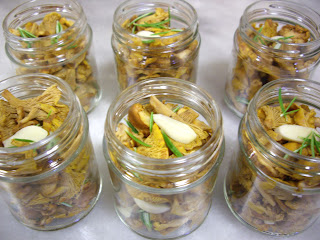 Αυτή τη βδομάδα, μετά τις πλούσιες βροχοπτώσεις στομανιταροκυνήγι μας μαζέψαμε πολλές κανθαρέλλες. Όσες περίσσεψαν από τις ομελέτες του πρωινού έπρεπε να τις συντηρήσουμε.